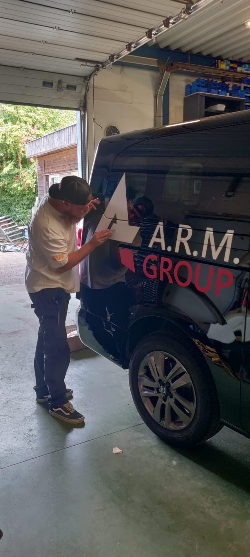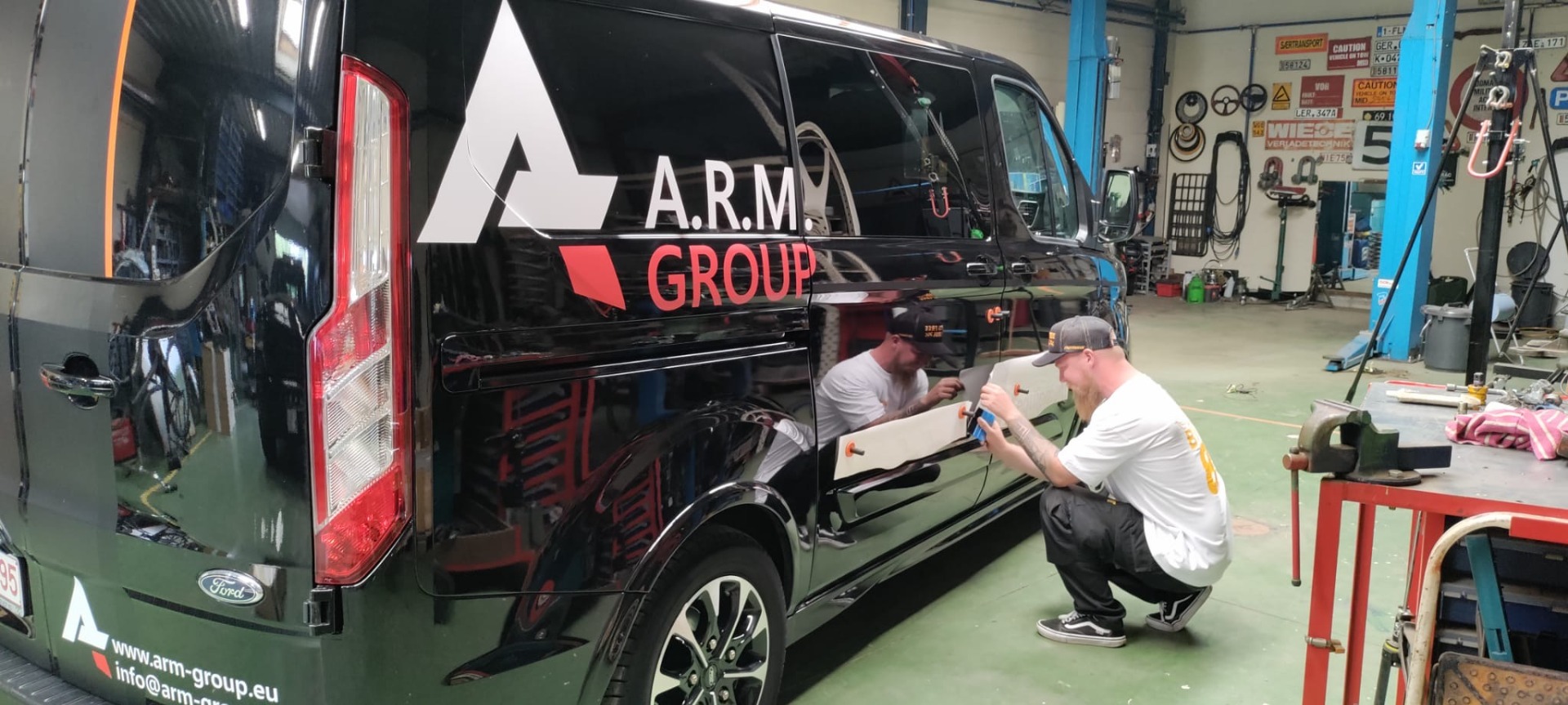 Volledige belletering van de bedrijfswagens van A.R.M. group.